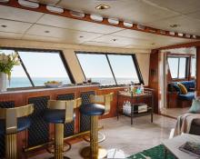 The luxury vessel’s exterior design is the work of famed Jack Sarin and she was last retrofitted in 1993 before the main and below deck renovation by Studio Ganz in 2022. Returning the boat back to its classic feel to reflect the current owners personalities while epitomizing a "work hard, play hard" lifestyle for adventurous entrepreneurs, the vintage style vessel brings new ideas to an old school world of yachting in a unique and modern way. The interior design is a sumptuous and playful balance of California cool and worldly opulence.