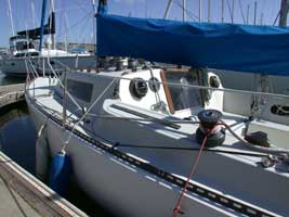 The 22-foot Santana was Gary Mull's very first sailboat design and is still one of the best boats in its size-range, especially for sailing in heavy air. The basic design sprouted from sketches on a cocktail napkin at the Chart House in Alameda. (Tools of the trade were much more basic in those days.)